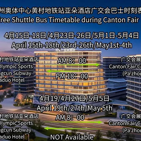 El Atour Hotel At Guangzhou Olympic Sports Center Huangcun Subway, de 4 estrellas, cuenta con 120 habitaciones y está a 7 km del Estadio Tianhe. Este hotel también ofrece a sus huéspedes WiFi en toda la propiedad.